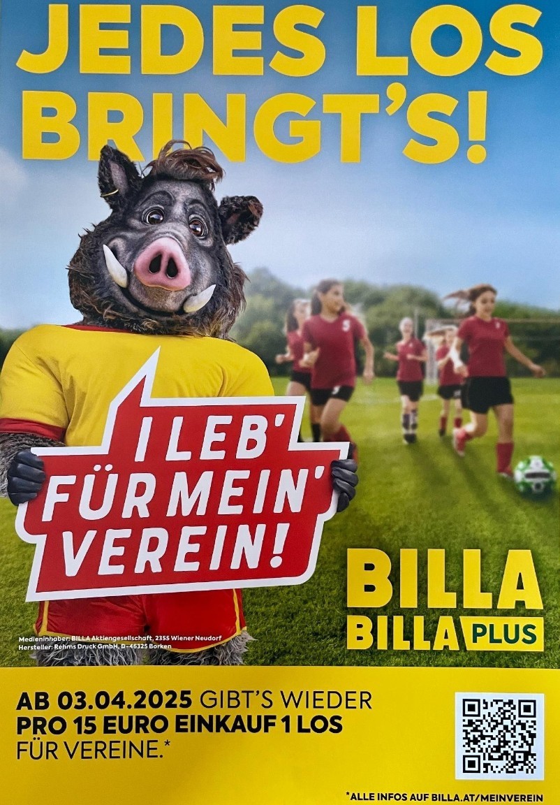 Die BILLA-Aktion zur Unterstützung unseres Sportvereins geht in die dritte Runde. Ab 03.04.2025 können Kund:innen beim Einkauf in jedem BILLA und BILLA PLUS Markt Lose für den SC Real Dambach sammeln. Der Sportverein kann diese Lose dann gegen lässige Gratisprämien eintauschen.